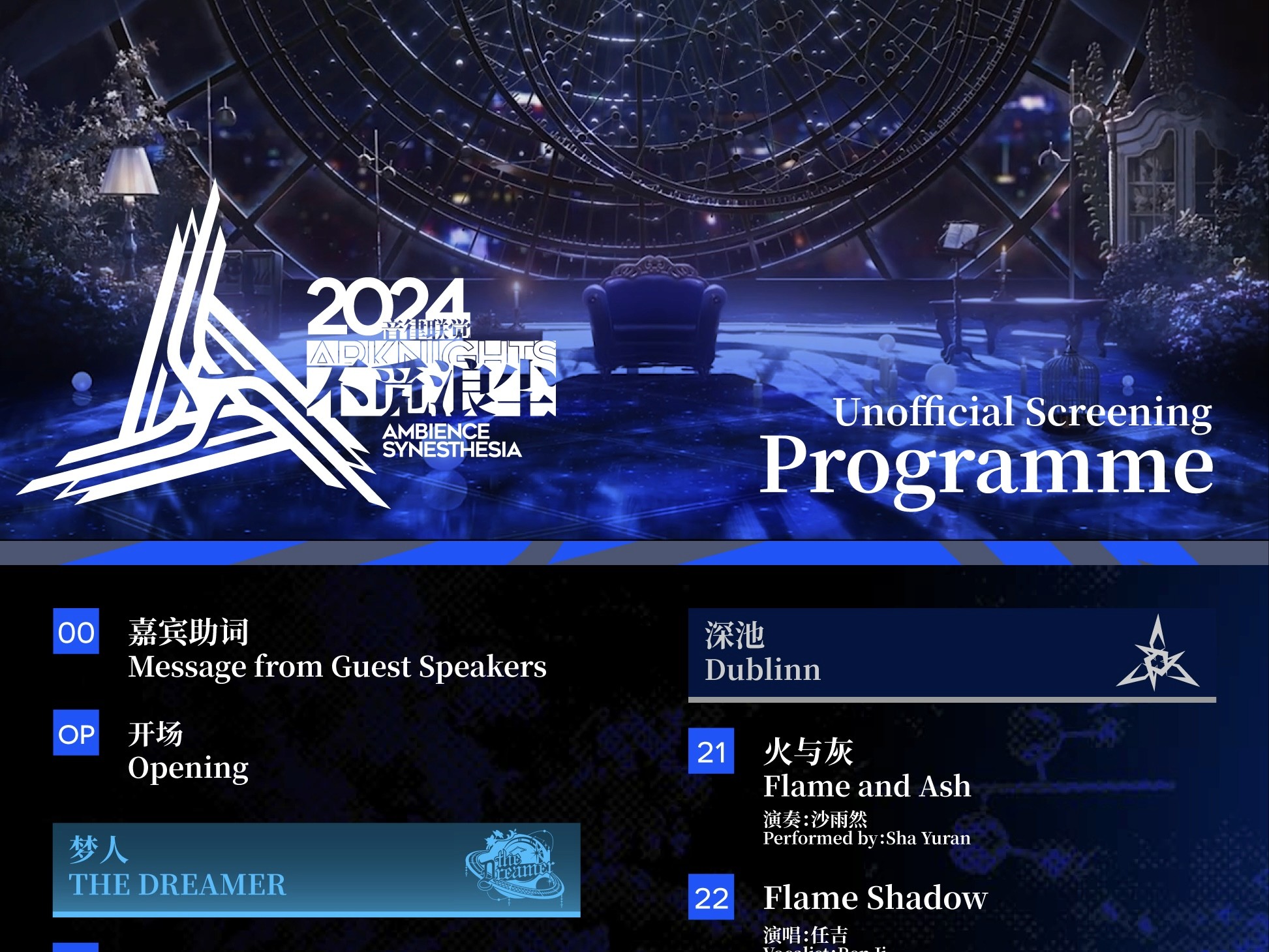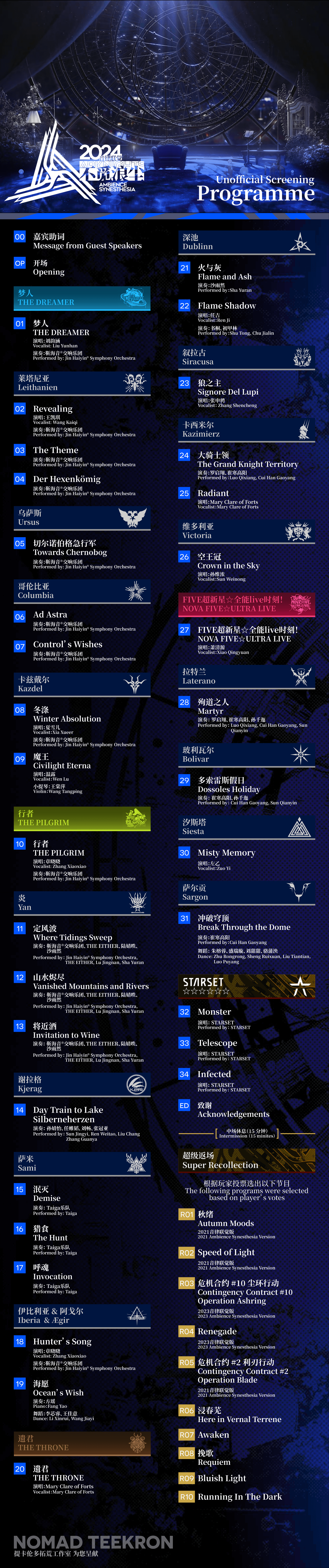 包含节目单、观众须知和嘉宾列表三种不同颜色样式。